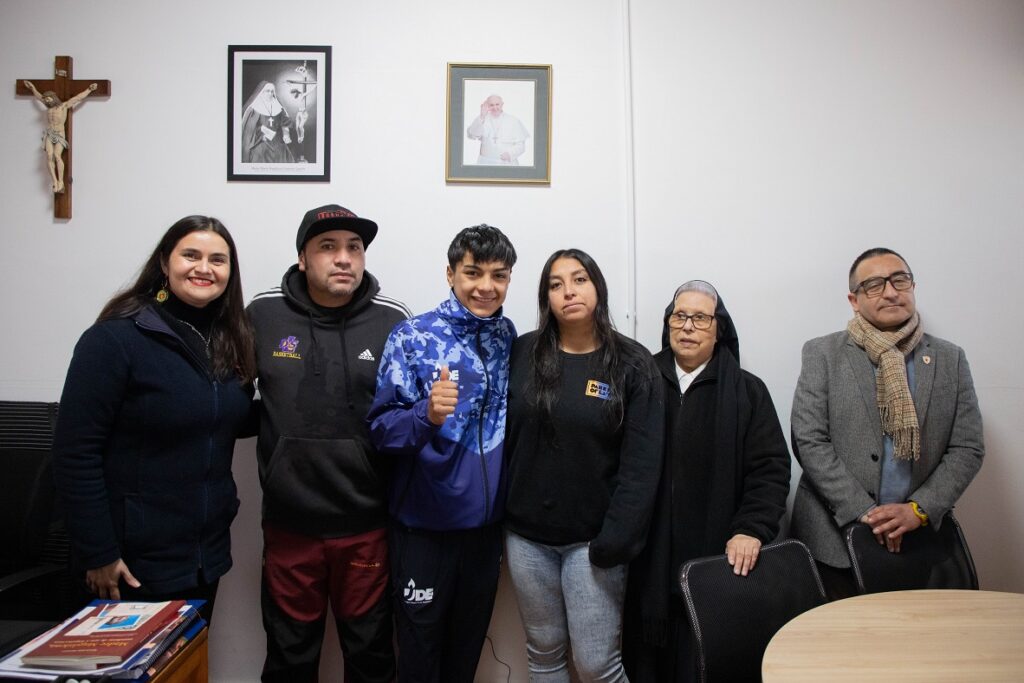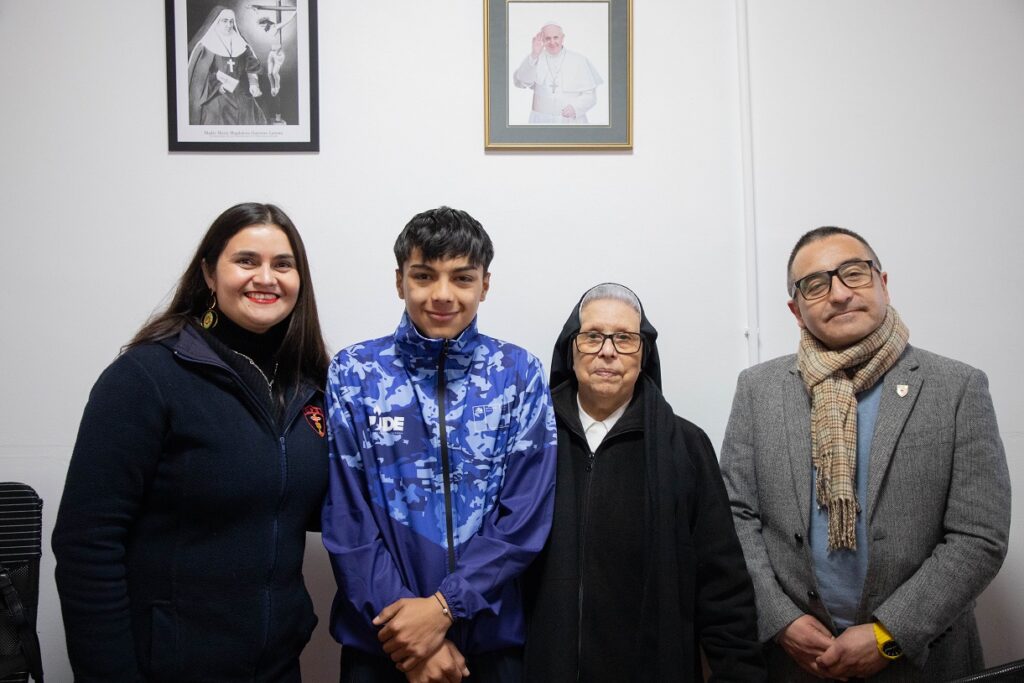 El pasado jueves 4 de septiembre, Madre Loreto recibió a Amaro Solas Banda junto a sus padres, para brindarle la bendición y los mejores deseos antes de enfrentar un importante desafío: la Final Nacional de los Juegos Deportivos Escolares 2025. Acompañaron en esta instancia nuestro Director Prof. Cristian Cabello Osorio e Inspectora General, Prof. Erna Pereira Arenas.