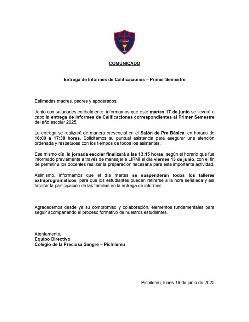 Para NT1 y NT2 su horario de salida es según horario habitual: 12:30 hrs.