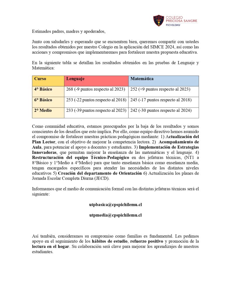 Comunicado – Resultados SIMCE
